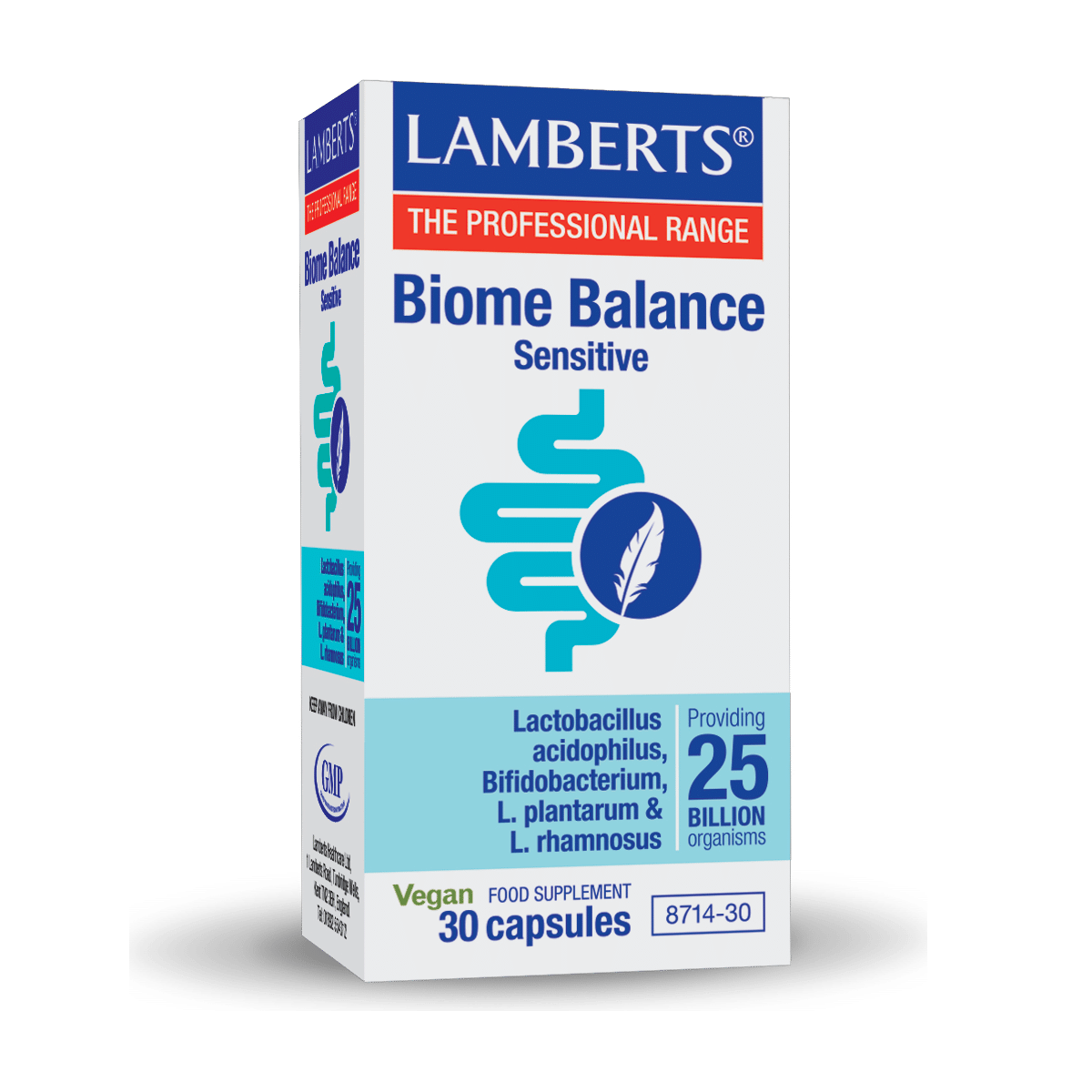 Lamberts Biome Balance 25 är ett probiotiskt tillskott som innehåller 25 miljarder aktiva bakterier per kapsel, vilket stödjer en hälsosam tarmflora och matsmältning. Innehåller fyra olika stammar av väl undersökta levande bakterier.