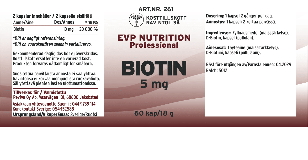 Ingredienser: Fyllnadsmedel (majsstärkelse), D-biotin, kapsel (pullulan).