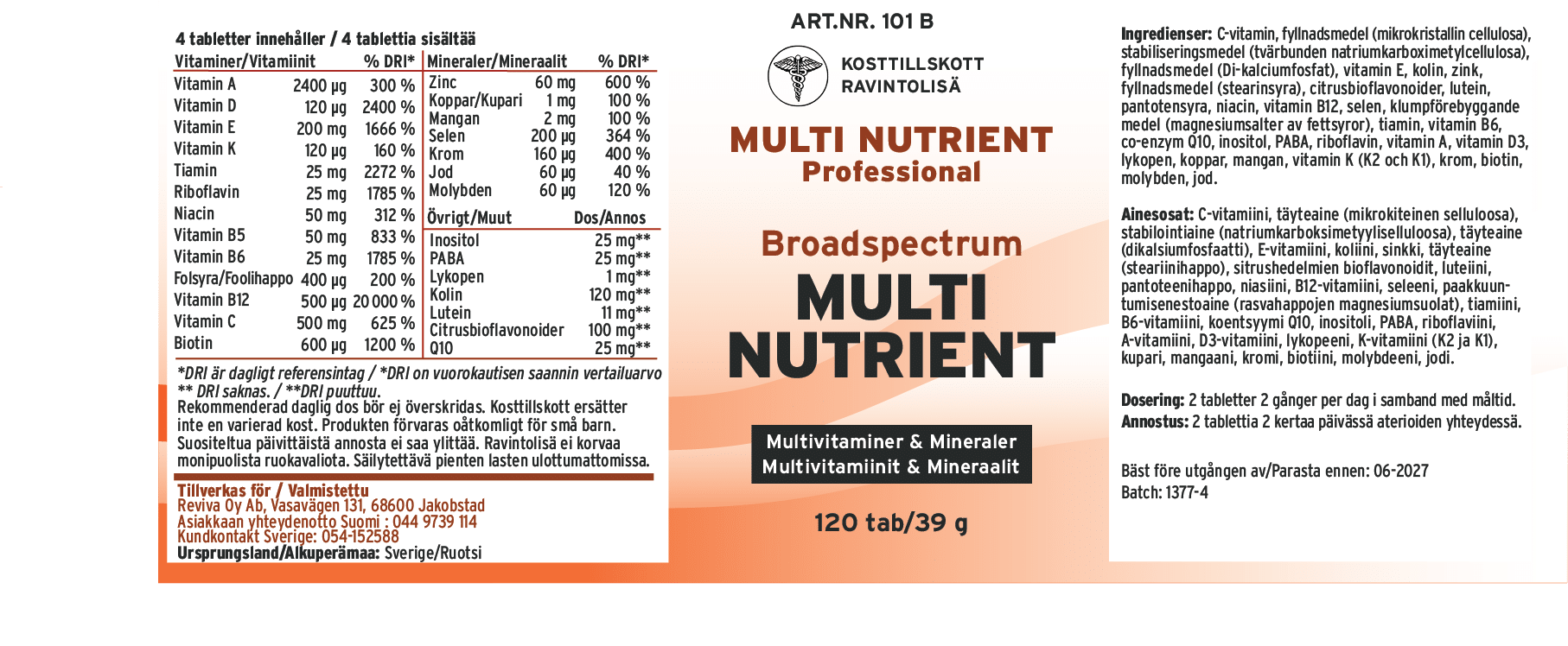 Bredspektrum Multi Nutrient är ett avancerat kosttillskott som ger optimala doser av vitaminer och spårämnen.