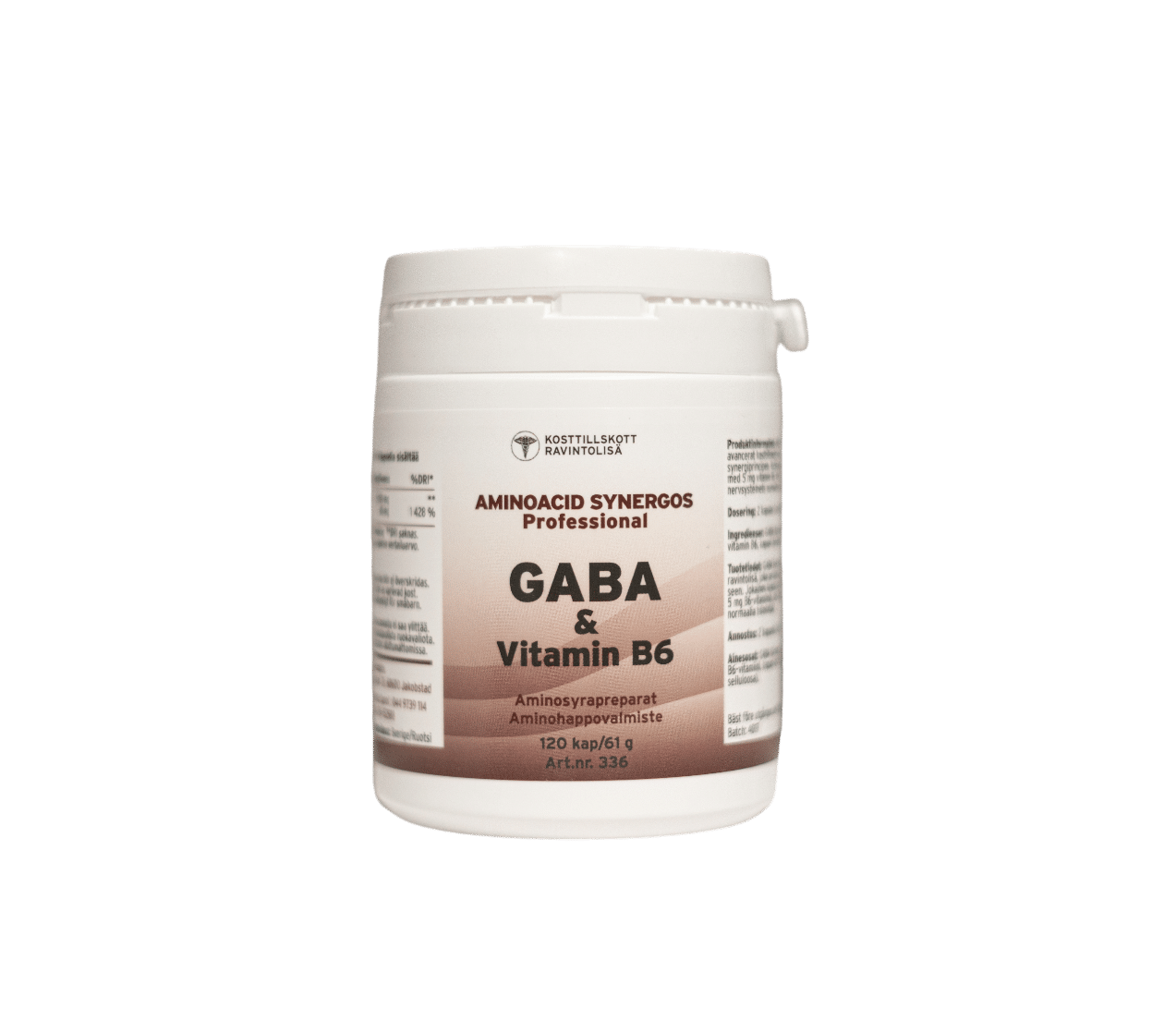 GABA (gamma-aminosmörsyra) är en av de viktigaste signalsubstanserna i hjärnan och spelar en central roll för nervsystemets funktion. Det verkar som en naturlig neurotransmittor som bidrar till att lugna nervsignaler och kan hjälpa till att främja avslappning, mental balans och en god nattsömn. Tillsammans med vitamin B6, som är en viktig kofaktor i GABA:s bildning och funktion, stödjer denna kombination både nervsystemet och det allmänna välbefinnandet.