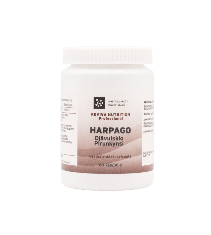 Ingredienser: Djävulsklo extrakt 2,5 % (Harpagophytum procumbens), kapsel (hydroxipropylmetylcellulosa).