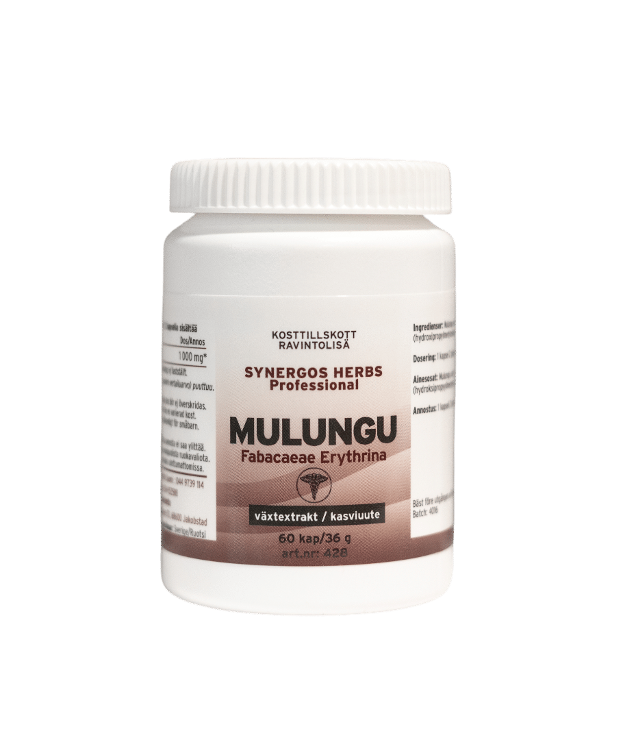 Ingredienser: Mulunguextrakt (4:1) (erythrina mulungu), fyllnadsmedel (di-kalciumfosfat, mikrokristallinsk cellulosa), klumpförebyggande medel (magnesiumsalter av fettsyror).